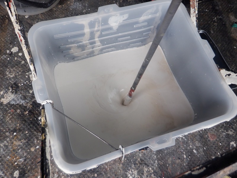 主材と硬化剤を3分間撹拌します。